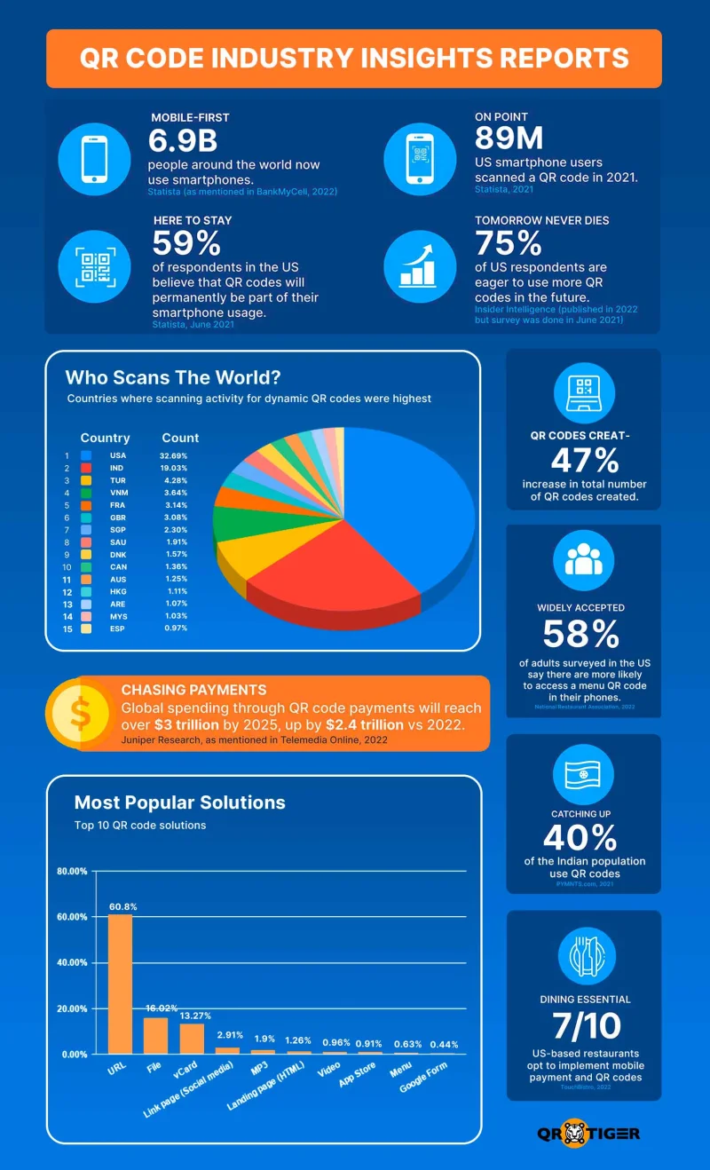 According to a QR code statistics report from QR TIGER QR Code Generator, global scans reached 41.77 million worldwide across all channels.