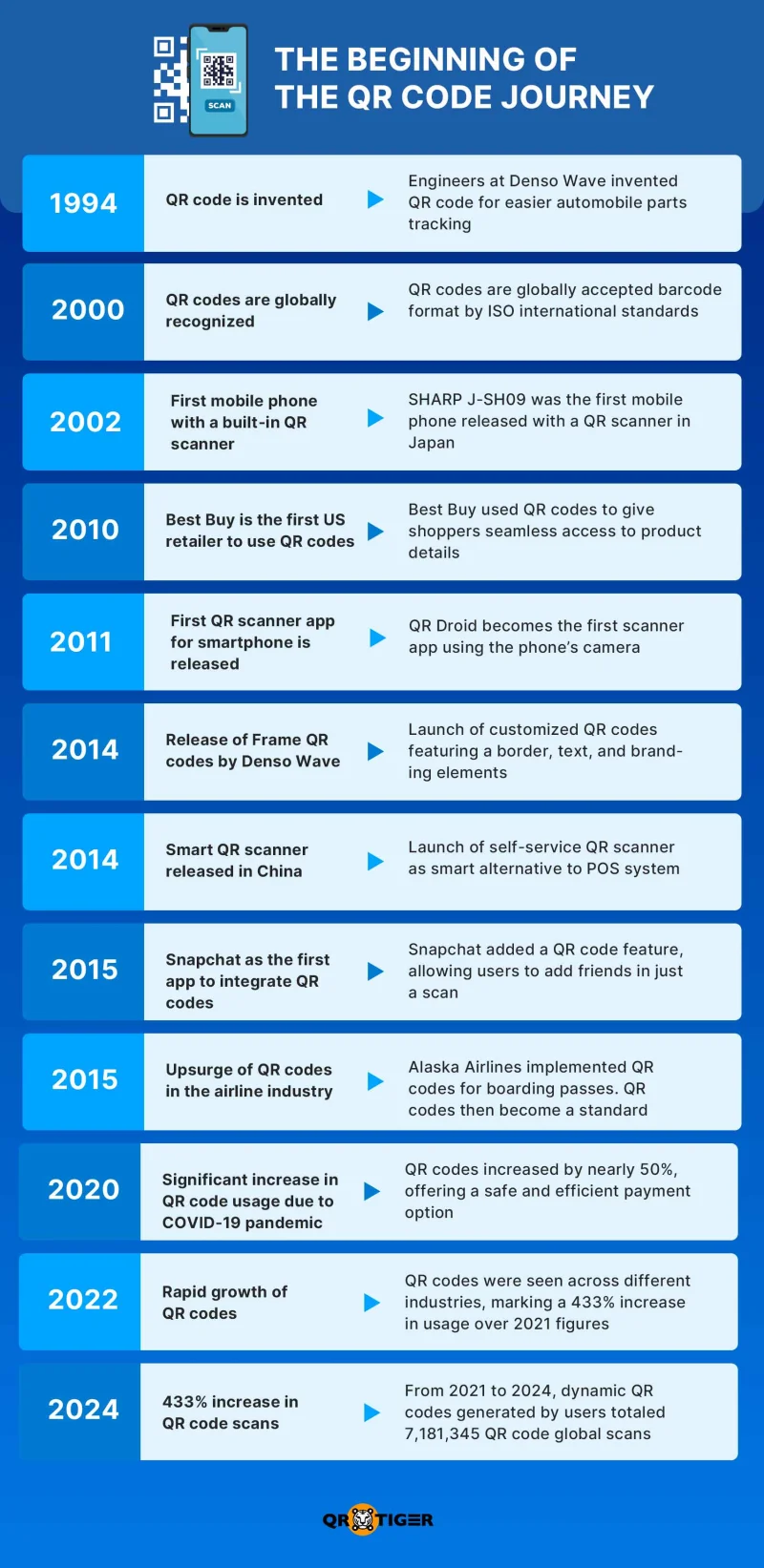 It all started in 1994 when a Japanese team at Denso Wave was tasked to create a barcode for easier automobile parts tracking during the manufacturing and production process.